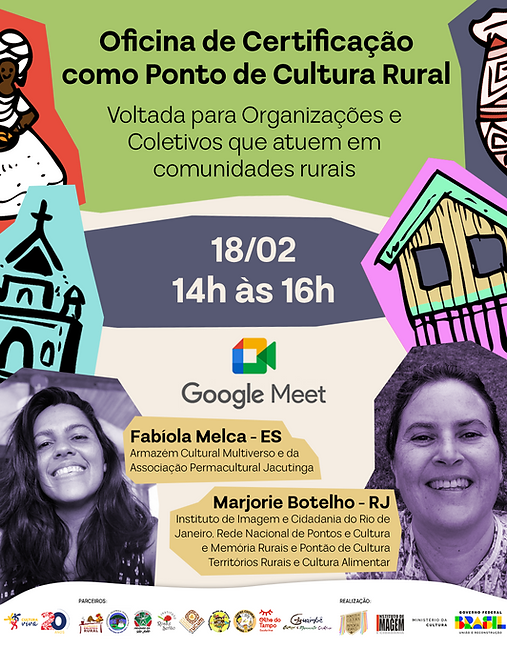O Pontão de Cultura Territórios Rurais e Cultura Alimentar e a Rede Nacional de Pontos de Cultura e Memória Rurais promoveu, no dia 18 de fevereiro, a Oficina de Certificação como Ponto de Cultura Rural. A atividade, voltada a organizações e coletivos culturais que atuam em comunidades rurais, foi realizada de forma virtual, via Google Meet, das 14h às 16h.